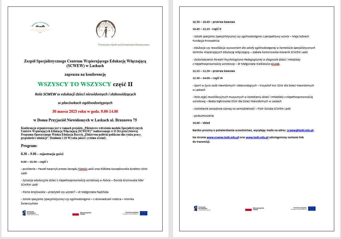 Szanowni Państwo, w pliku poniżej zamieszczamy harmonogram działań naszego zespołu w VIII etapie, realizowanym w ramach projektu „Pilotażowe wdrożenie modelu Specjalistycznych Centrów Wspierających Edukację Włączającą (SCWEW)” w ramach II Osi priorytetowej Programu Operacyjnego Wiedza Edukacja Rozwój „Efektywne polityki publiczne dla…